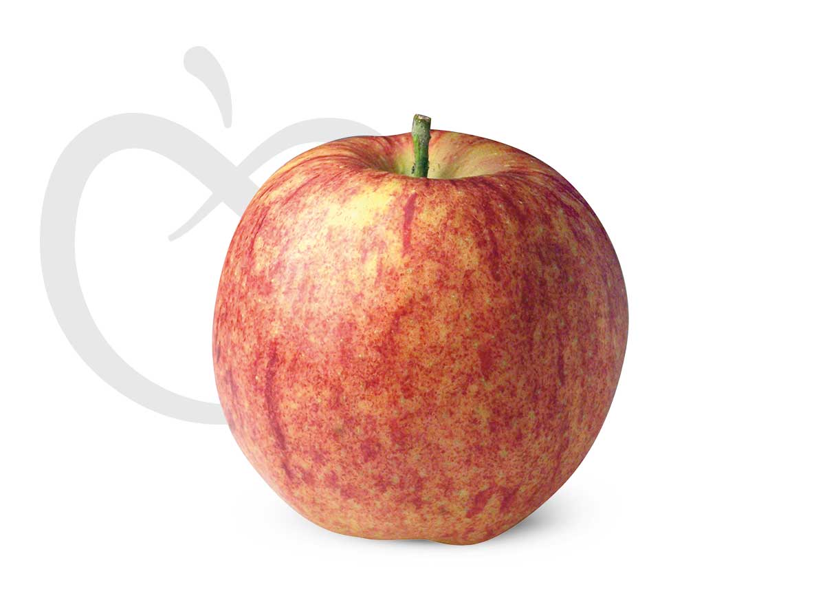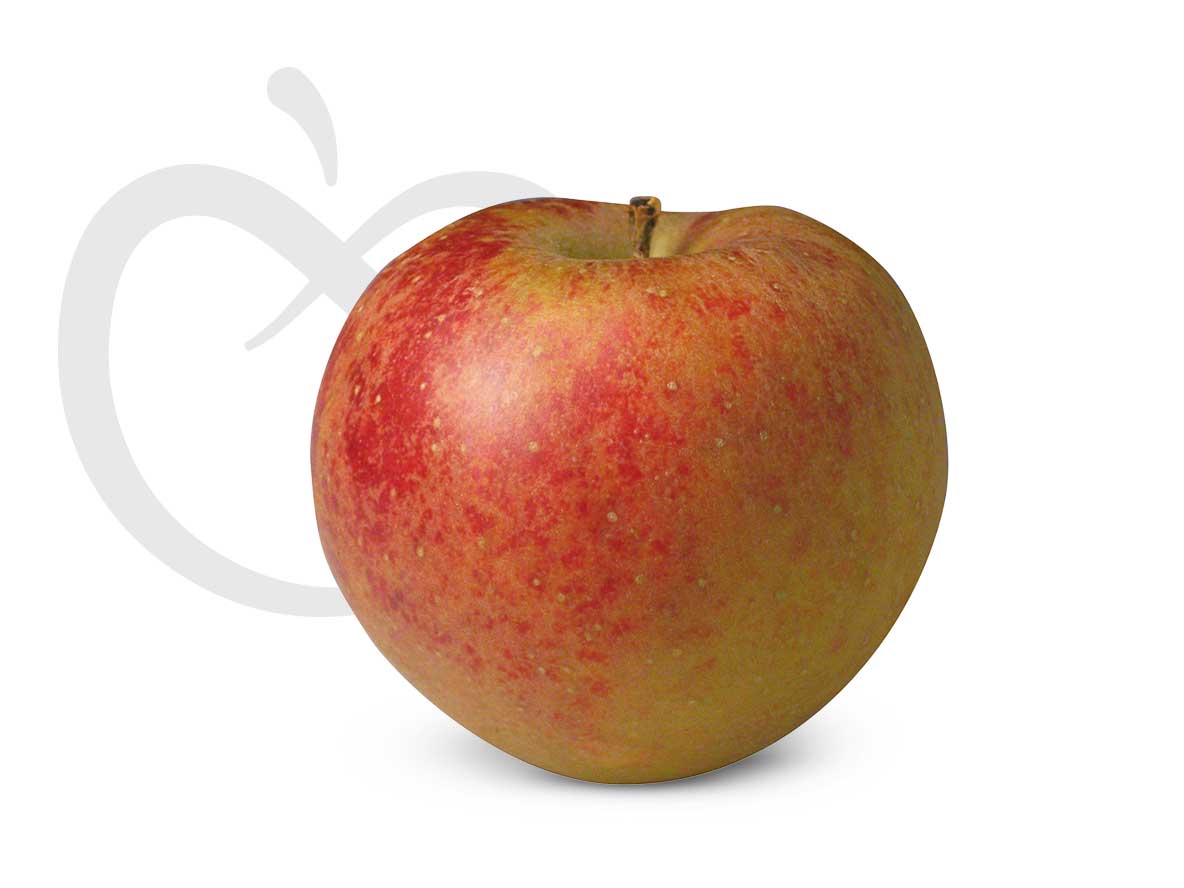 Groß, rundlich, gelbrote Farbvariation, knackiger Biss