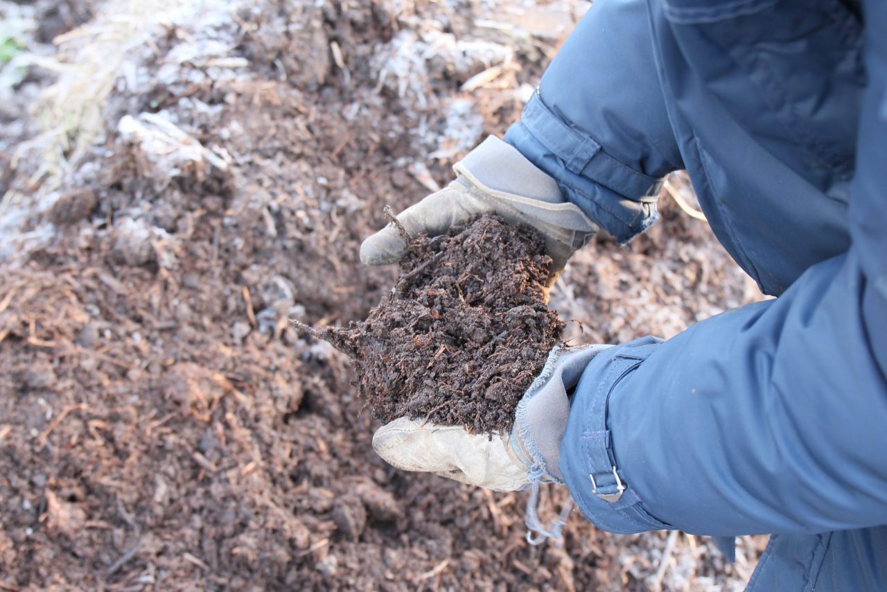 Kompostarbeit bei Bio-Obst Augustin